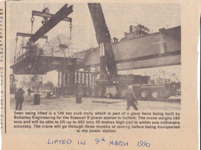 Sizewell B Polar crane on test bed outside main offices - Butterley Works March 1990