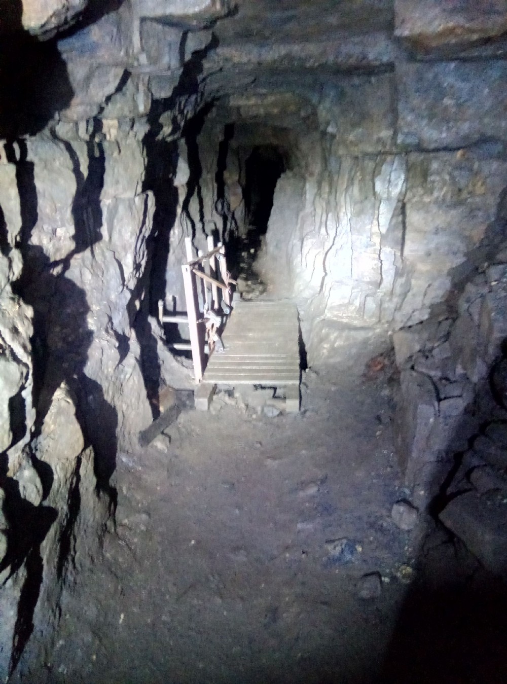 bridge over collapse in main horse level,,ladder to the left allows access to the lower cross vein.