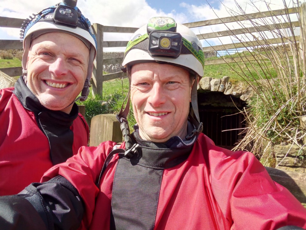 Andy Charlton and I (Paul Edward Binney) outside of Skears Firestone level testing out our brand new AV over suits from Tony at Starless river.They didn't stay clean for long.