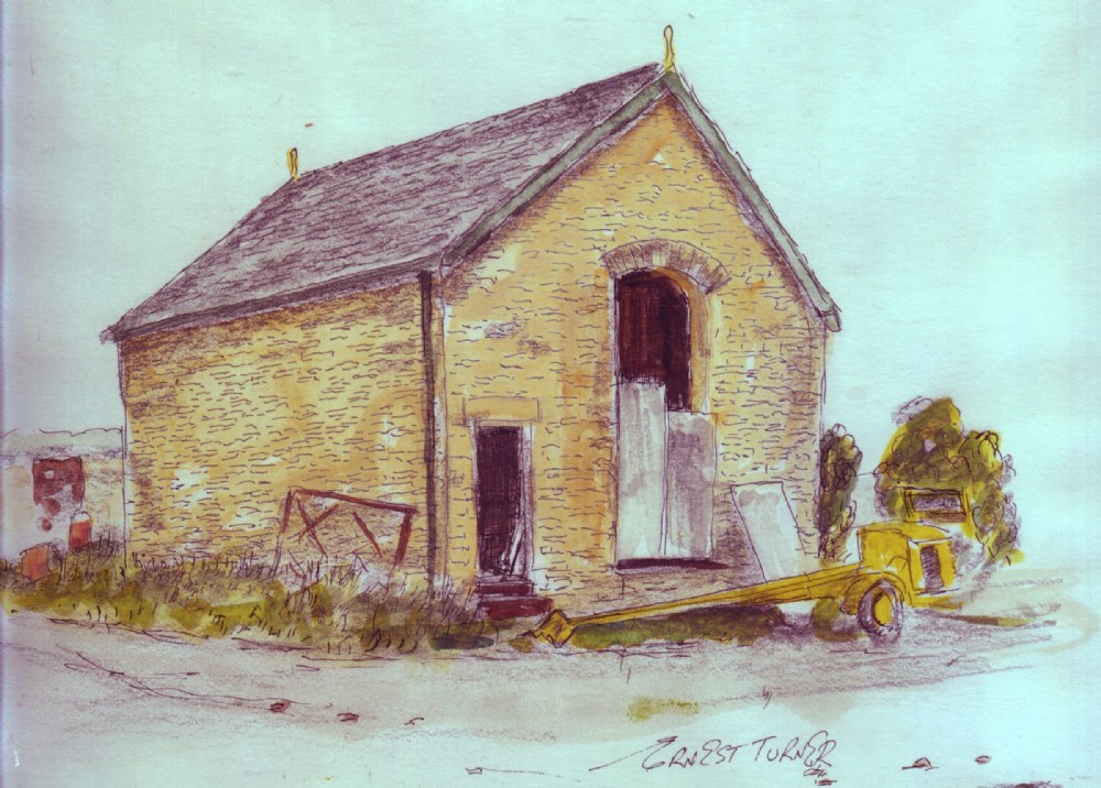 Sketch of Old Engine House, Hermit Hill Colliery. Sketch by local artist Ernest Turner