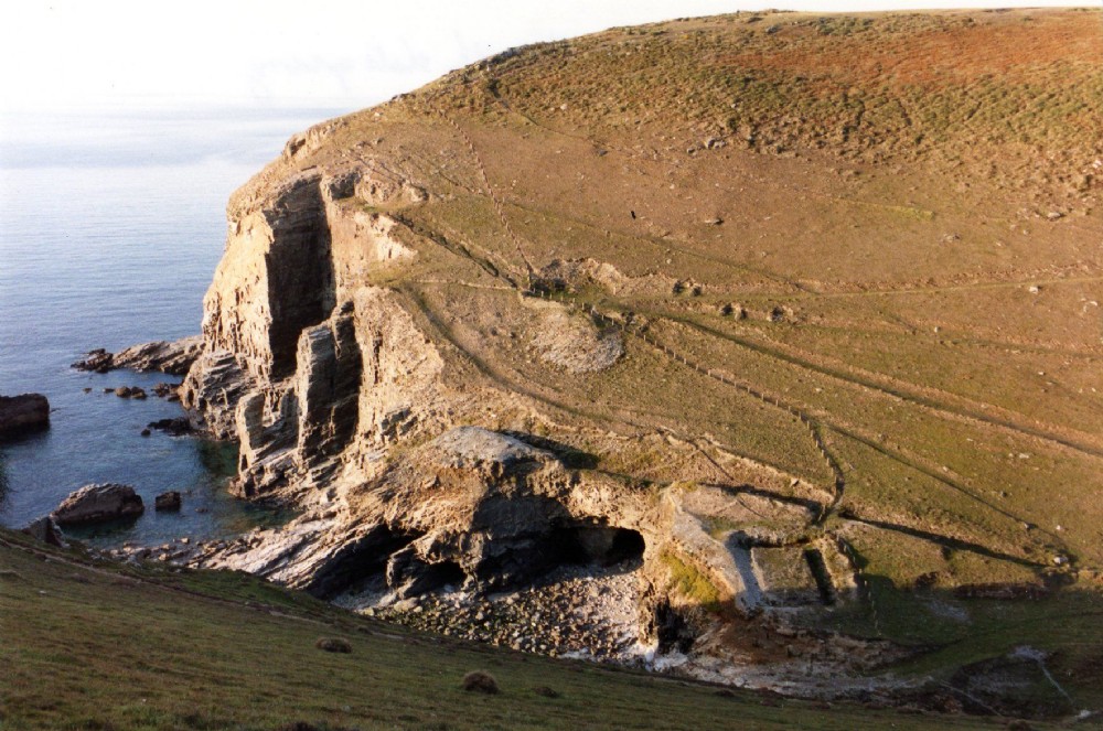 A low sun highlights some interesting features around the cove, possibly an incline, but certainly tracks connected to the workings.