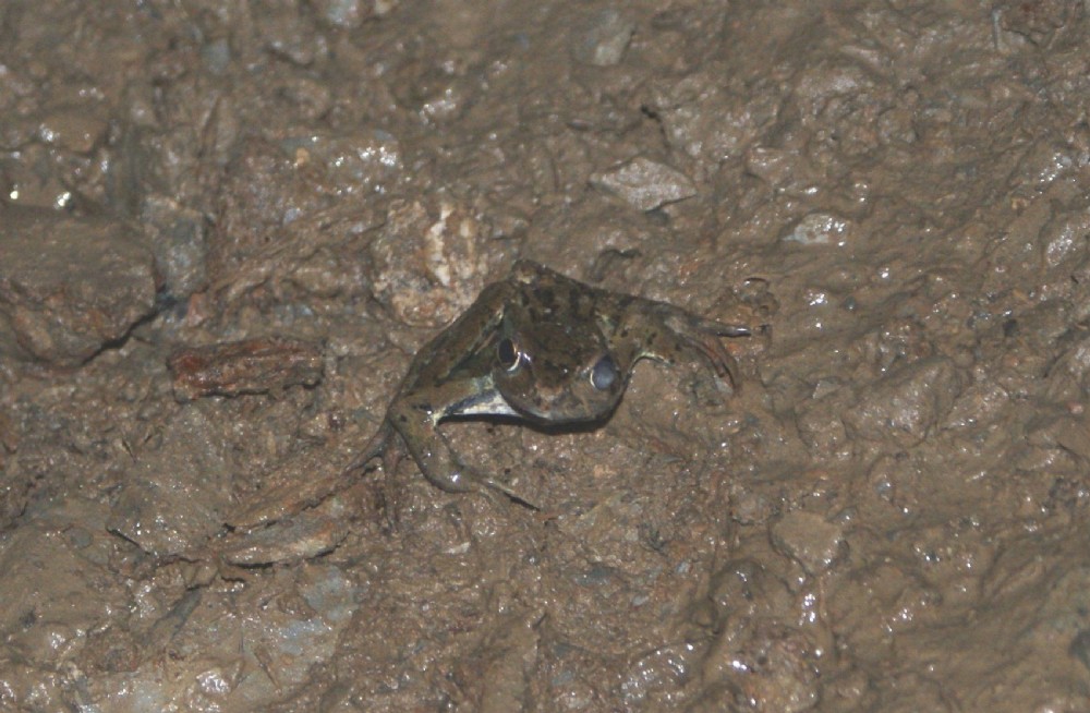 There were several frogs at the bottom of the shaft, possibly washed down by the large volume of water entering the shaft at the time.
