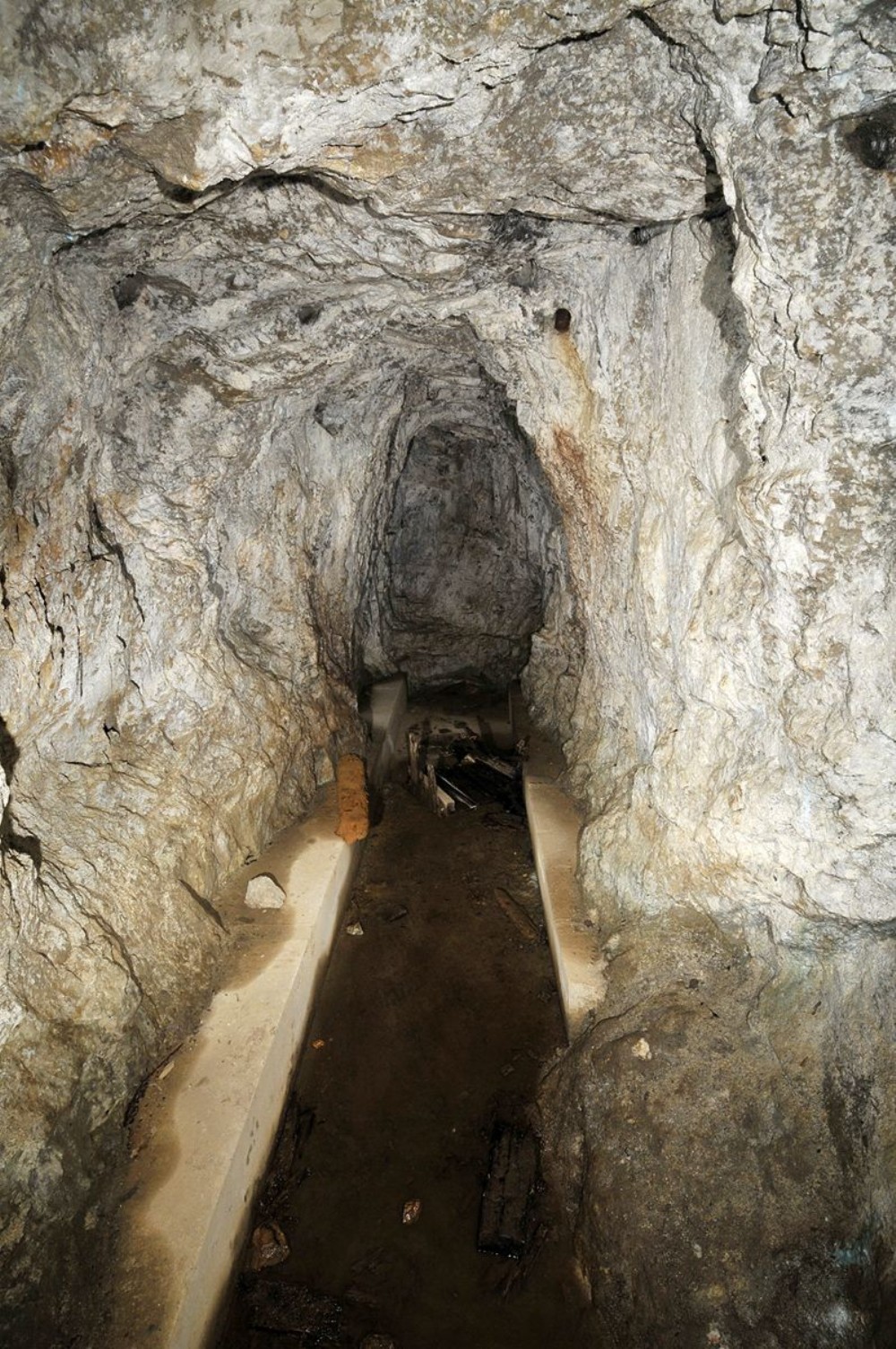 Small heading with concrete bases near the ore chute (under Stewart's stope). [October 2012]