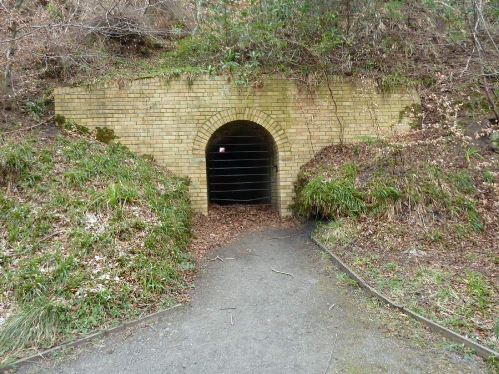 Looking towards the drift entrance, the new brick is by the National Trust, who have made a feature of this old drift in their Gibside property.
