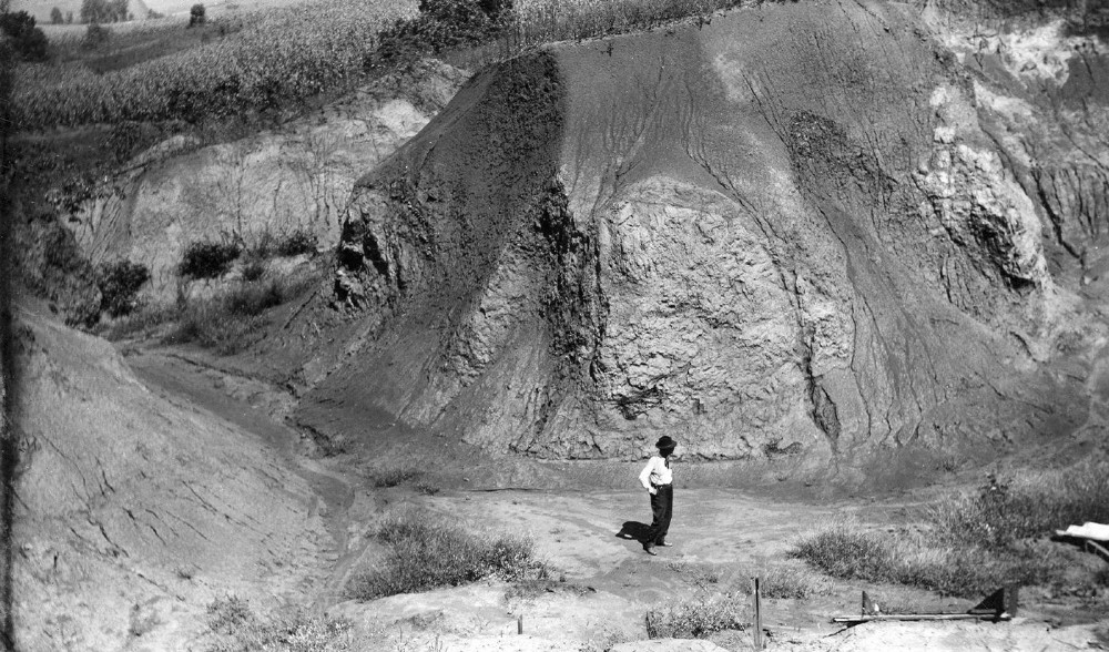 E.D. Gilman's soft iron ore mine. Shows rounded mass of dark soft ore overlain by reddish clay. Monroe County, Tennessee. No date.