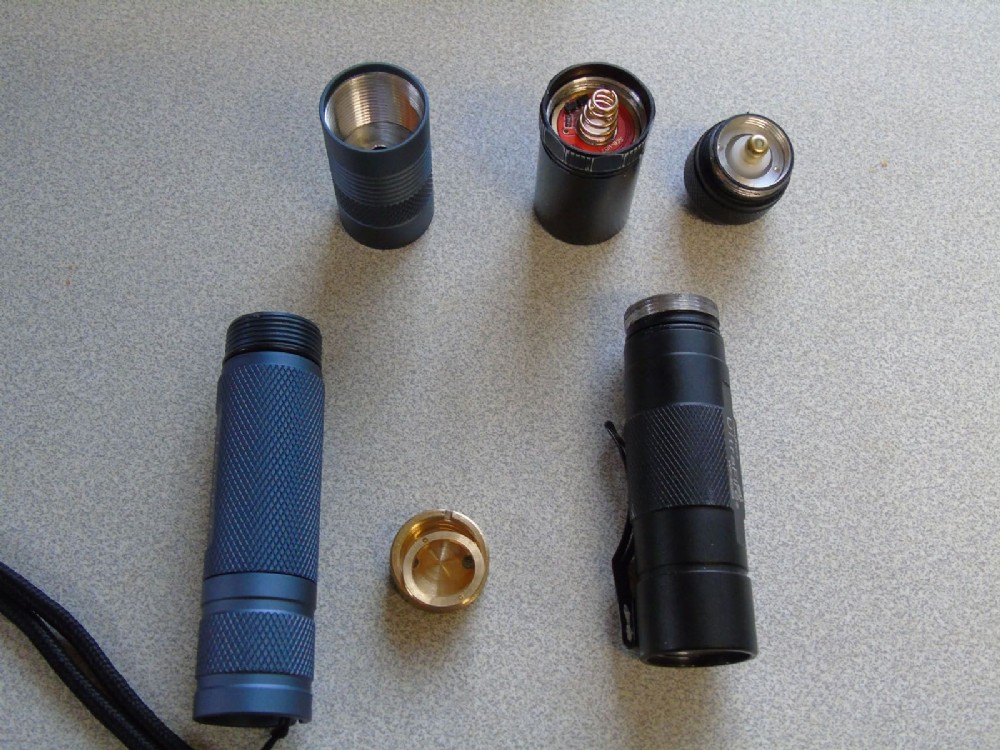 On the left is the Convoy S2 bare host from Fasttech. On the right a hash up of various bits. Its a bbost driver pushing a Cree XHP 35 to give 1700 lumens from a small torch