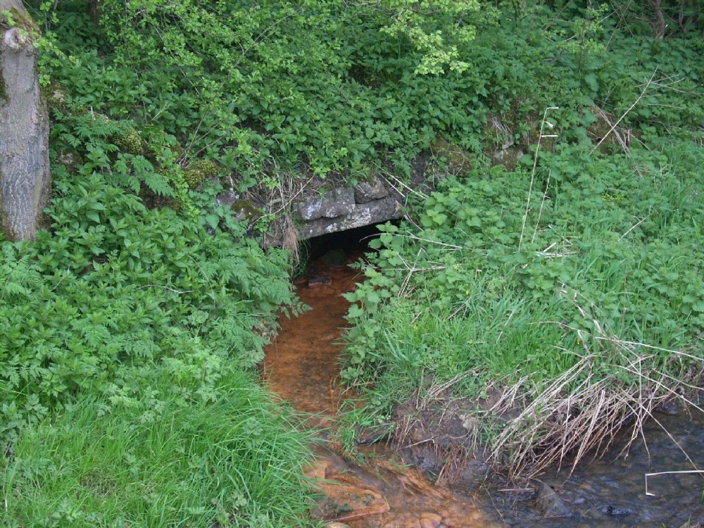 Odin (Oden) Sough Bolt aka Trickett Bridge Sough with ochreous water emerging from sough (16 April 2009)