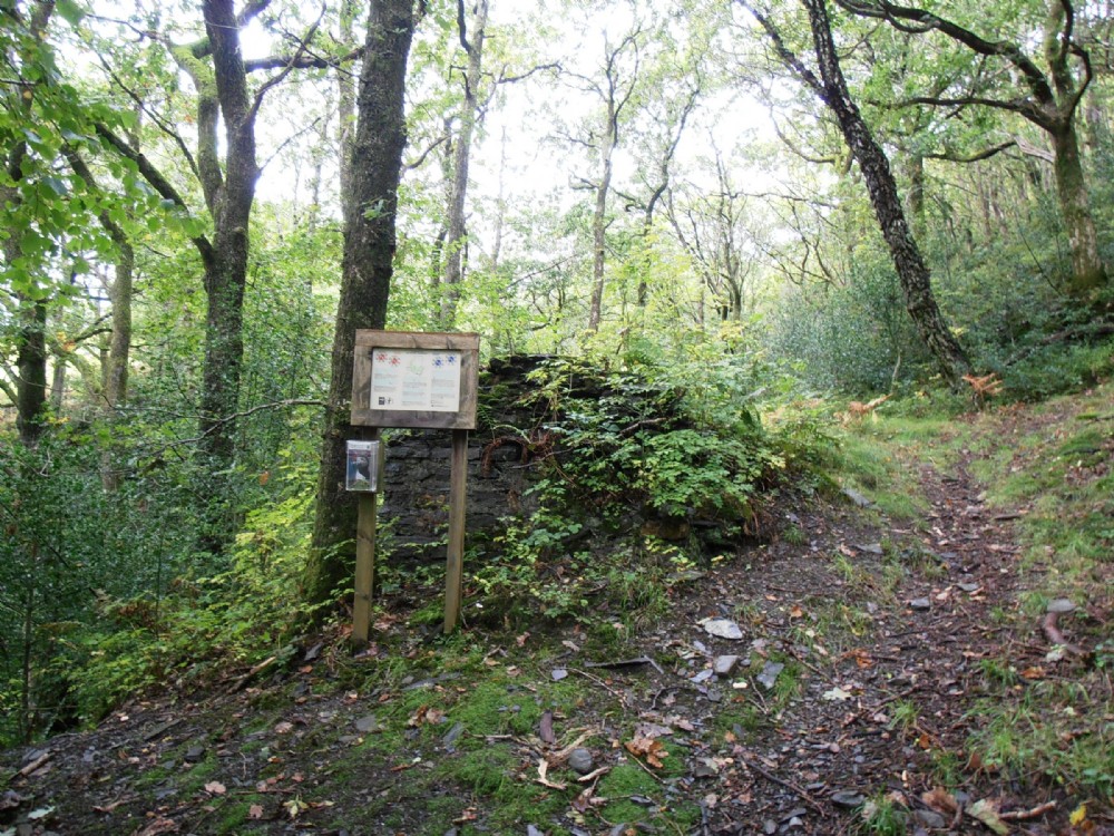 The mine is in the heart of the Coed Simdde Lwyd nature reserve. The only thing to tell you that the mine's nearby is the old building by the path - hard to identify what it was, though.