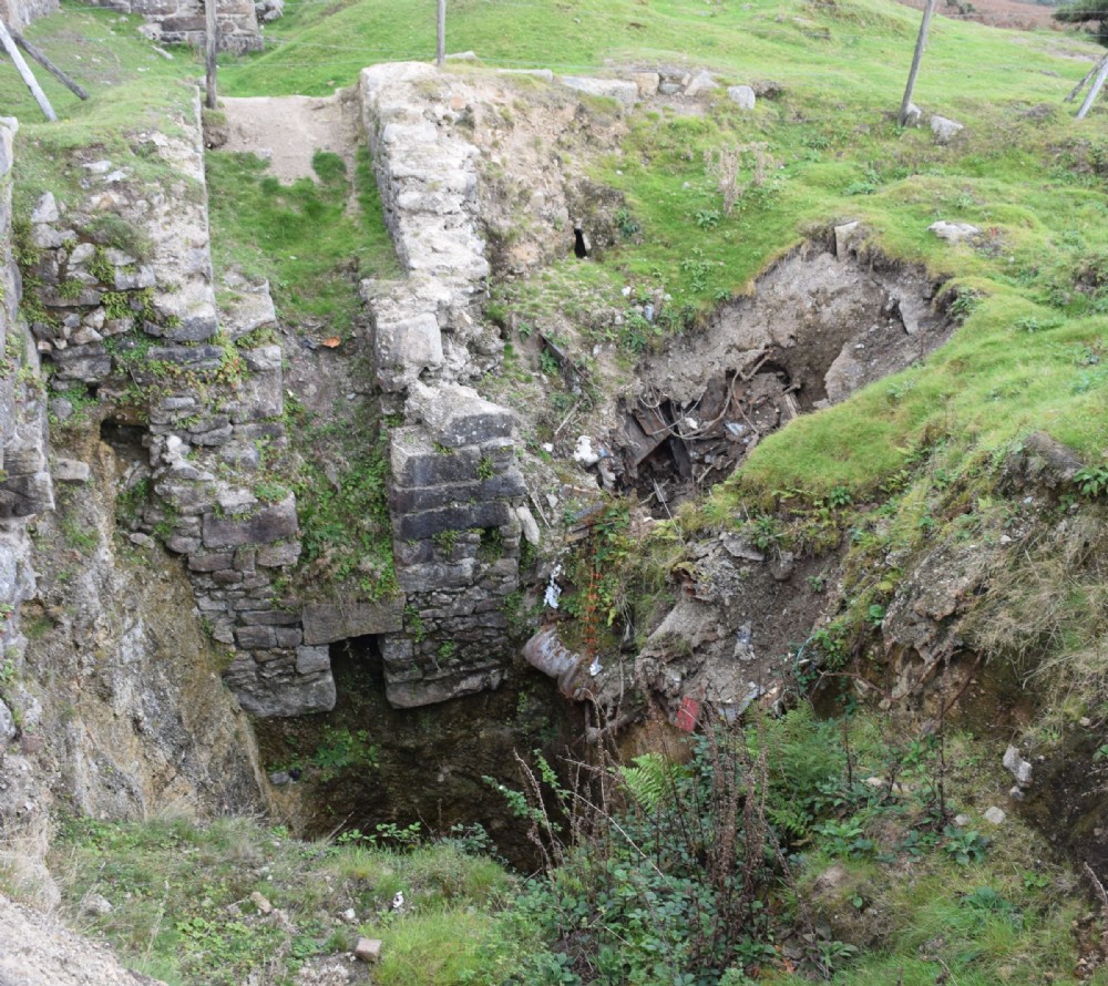 Kittow's Shaft, there has been a a bit of movement recently another of the 3 inclind shafts hear has opened up towards the top of the photo. This shaft i belive is the south easterly 210 fathom shaft to work the Caunter load. 19-09-20