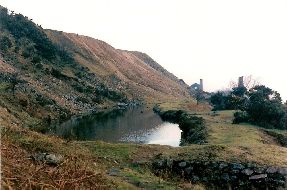 The main water reservoir known as Donkey Pond hear full of water. Jopes engine house in the distance.