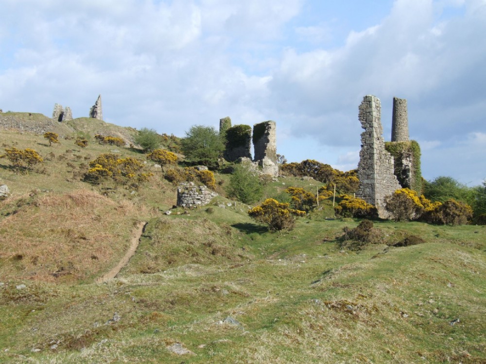Pearce's Shaft Engine House top left Old Sump Shaft Winding engine house center. Pumping Engine house right. 03-05-10