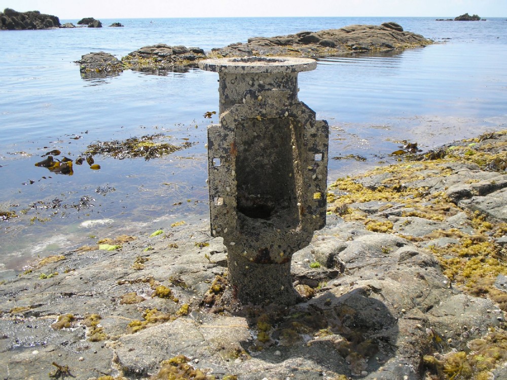 Pitwork bolted onto rocks. No obvious reason unless as a mooring post?