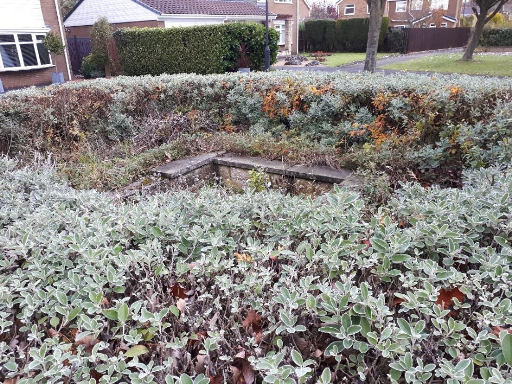 looking inside the flower bed, well stocked but neglected, there is probably an access point to the shaft in centre.