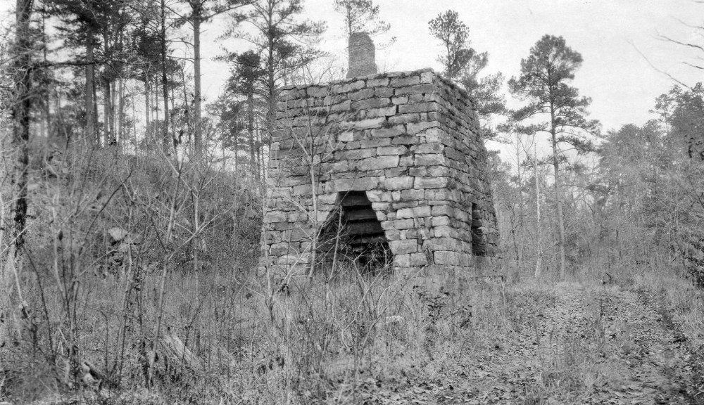 About one and one-half miles south-southeast of Tannehill Station on the Alabama Great Southern Railroad. South stack of old Tannehill charcoal blast furnace on property of Republic Iron & Steel Company.