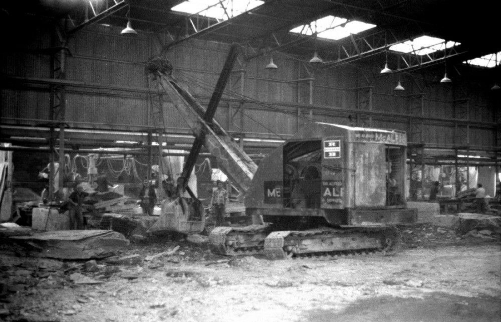 In the sheds was this excavator, splitting big blocks by simply swinging the bucket teeth into them!
