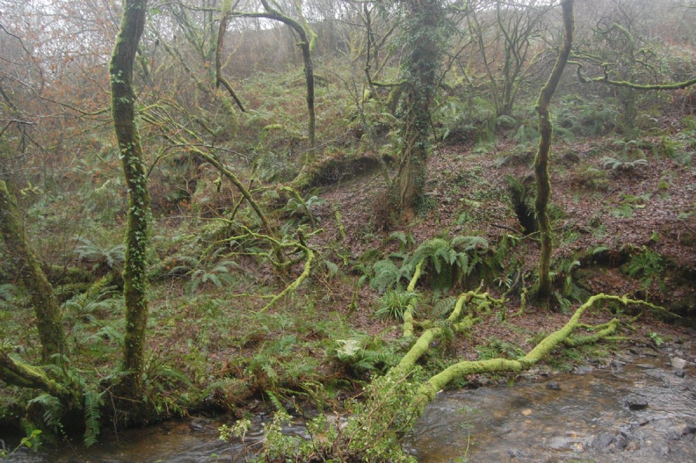 A view of the portals from the other side of the stream. The nearly blocked portal is to the left.