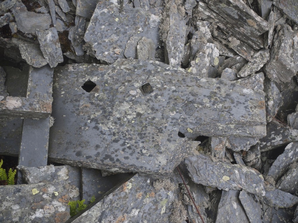 Near the main mill area we found many of these blocks of slate with perfectly square holes punched in them.