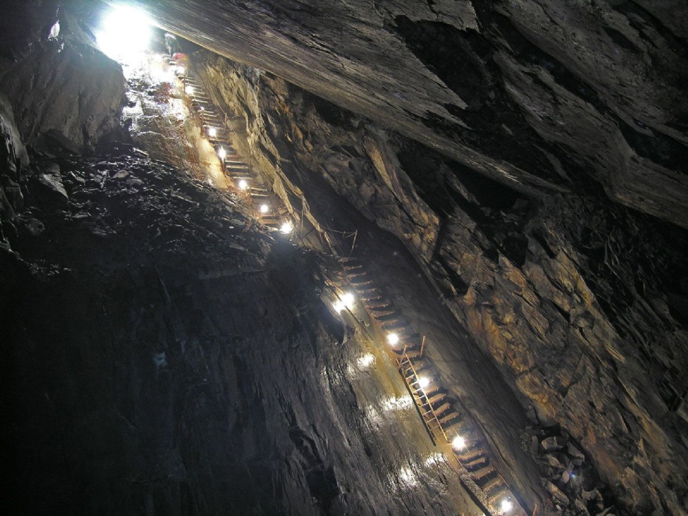 Whilst more slate steps were being installed, Chamber 1 West was lit up, allowing this photo to be taken. Floor A may be discerned in the gloom, about halfway up the photograph.