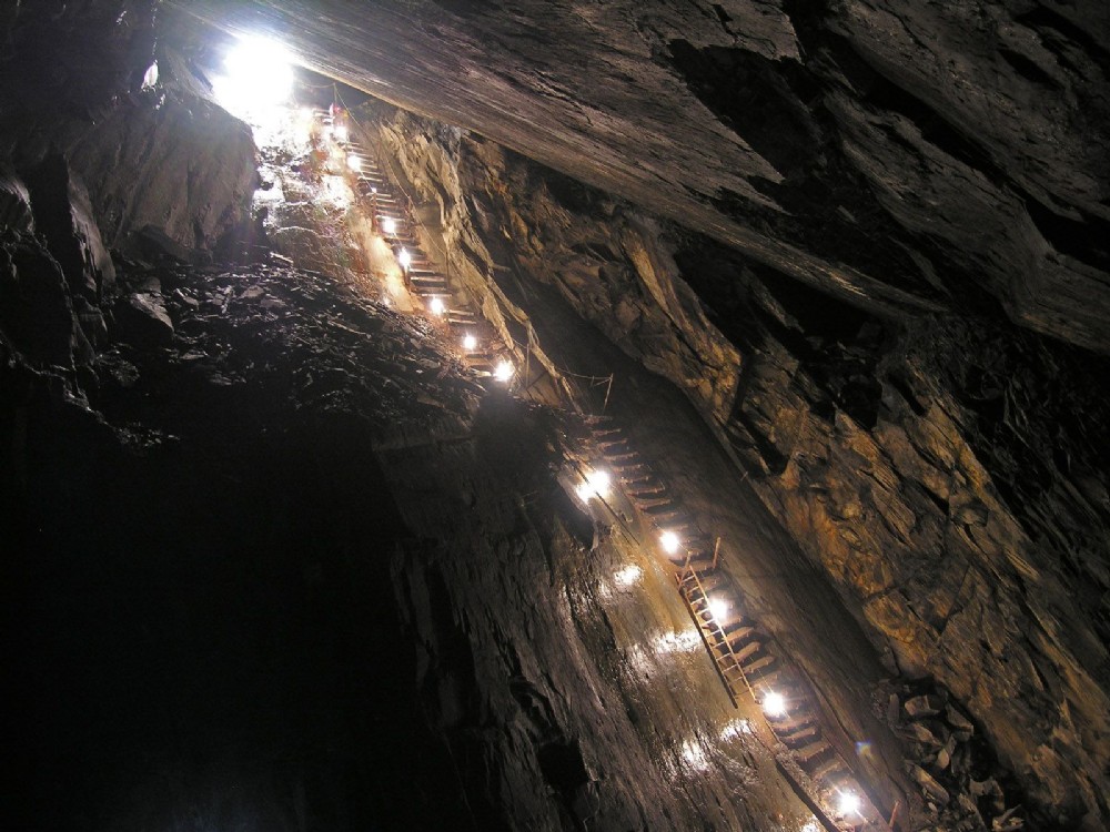 Whilst more slate steps were being installed, Chamber 1 West was lit up, allowing this photo to be taken. Floor A may be discerned in the gloom, about halfway up the photograph.