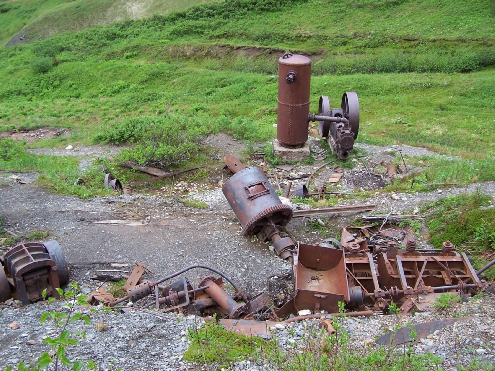 Overview of remaining steam engine boiler, winding gear and other mechanical equipment.