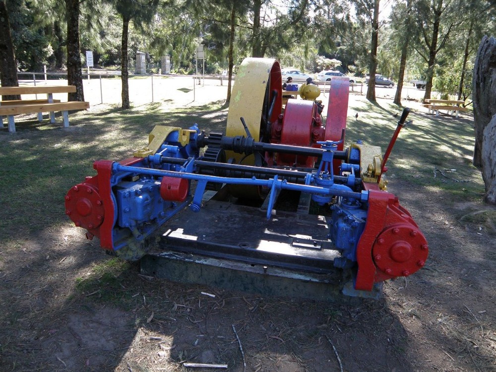 The colourful remains of a steam winch in the park outside the entrance to the Katoomba Scenic Railway complex.