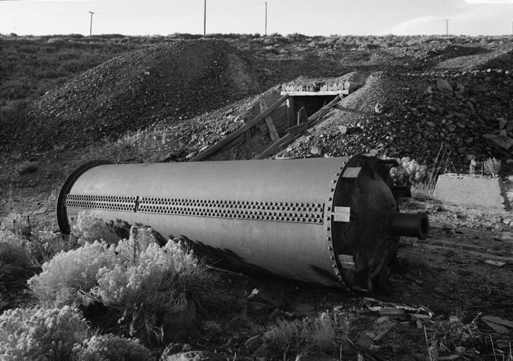 Jack E. Boucher, photographer, October 1974. STEEL TANK WITH ACCESS HOLE, INTERIOR LINED WITH STONE.