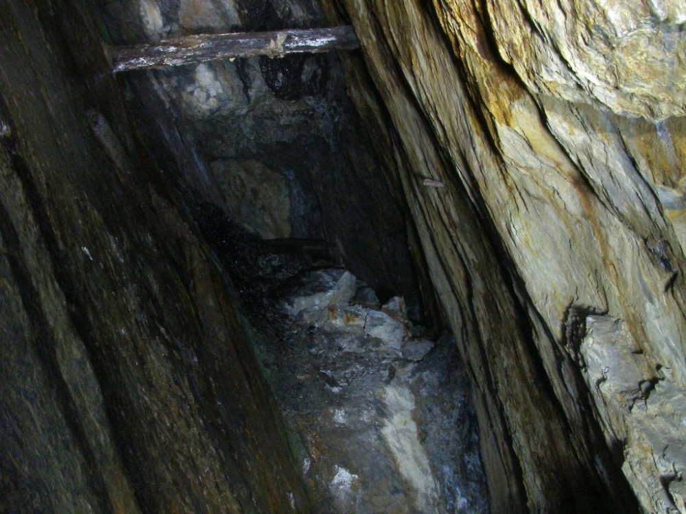 This stope just breaks to daylight above and continues down some distance. The adit appears to continue beyond.