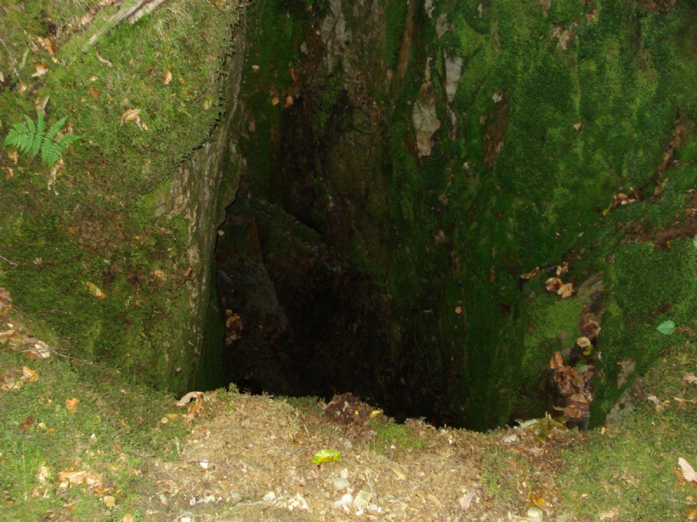 Small open stope below the mine adjacent to the footpath up the hill from Tre Taliesin
