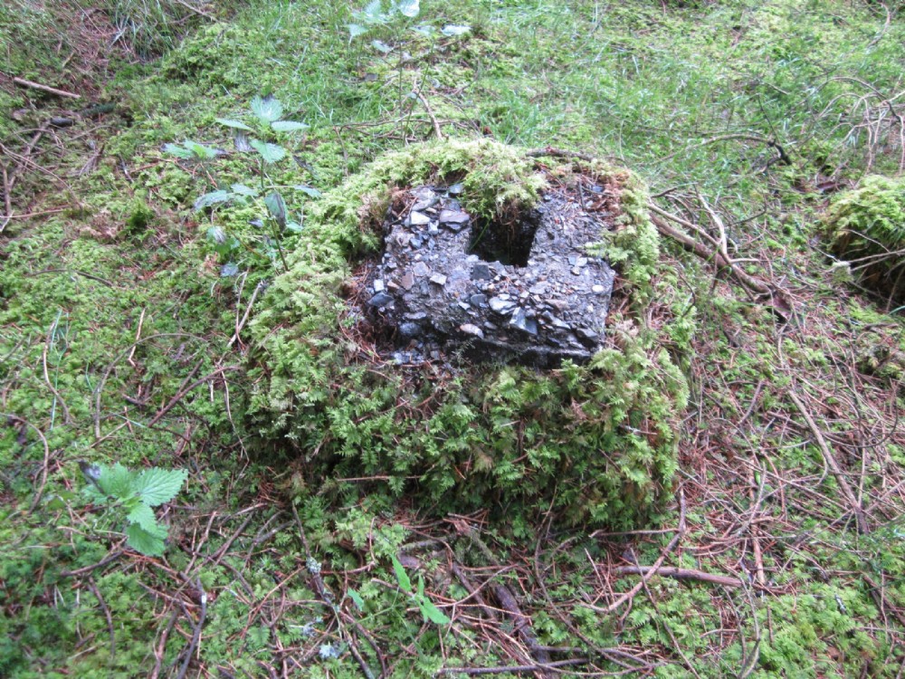 Close up of one of the supports showing square opening in top about 3" in diameter