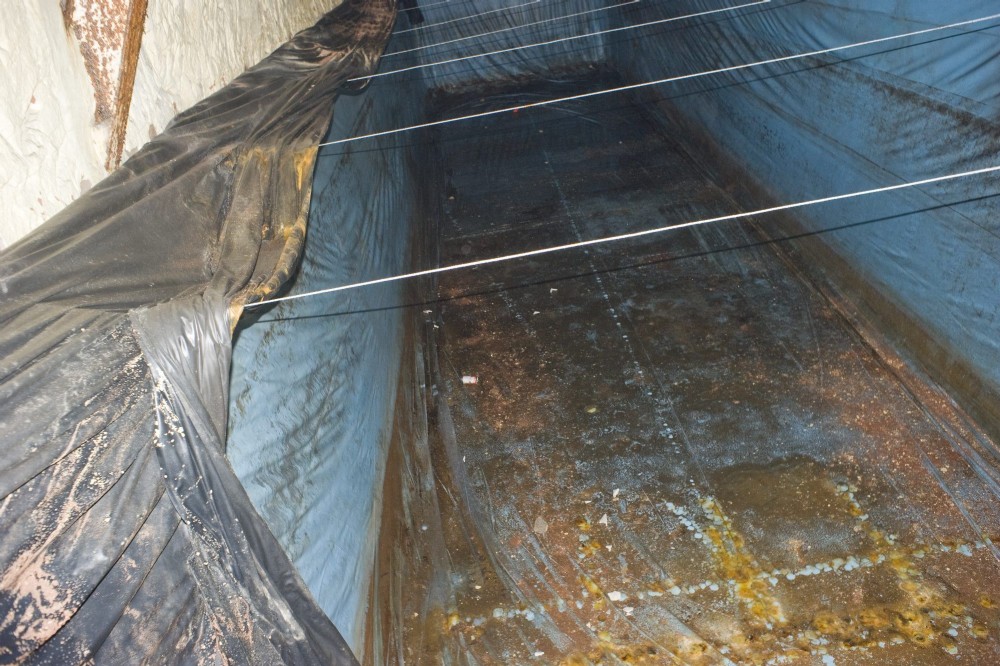 Enclosed by 3m walls. Camera held overhead on extended tripod reveals a water storage facility.