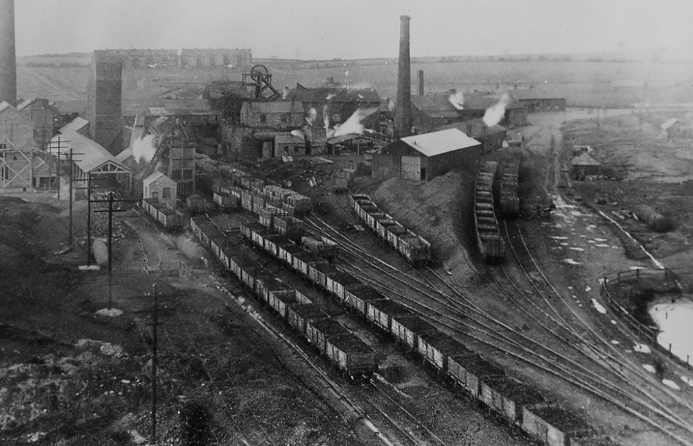c1905. The photograph was taken from on top of the bunkers associated with the battery of 70 Simon Carves bye-product coke ovens on the site. These replaced a several ranges of beehive coke ovens around 1900. There were two shafts here with the upcast (No.2) just out of view on the left. The downcast shaft (No.1) was 384 yards deep to the Bullhurst seam. The buildings in front of the chimney on the right were used to repair railway wagons and locomotives.