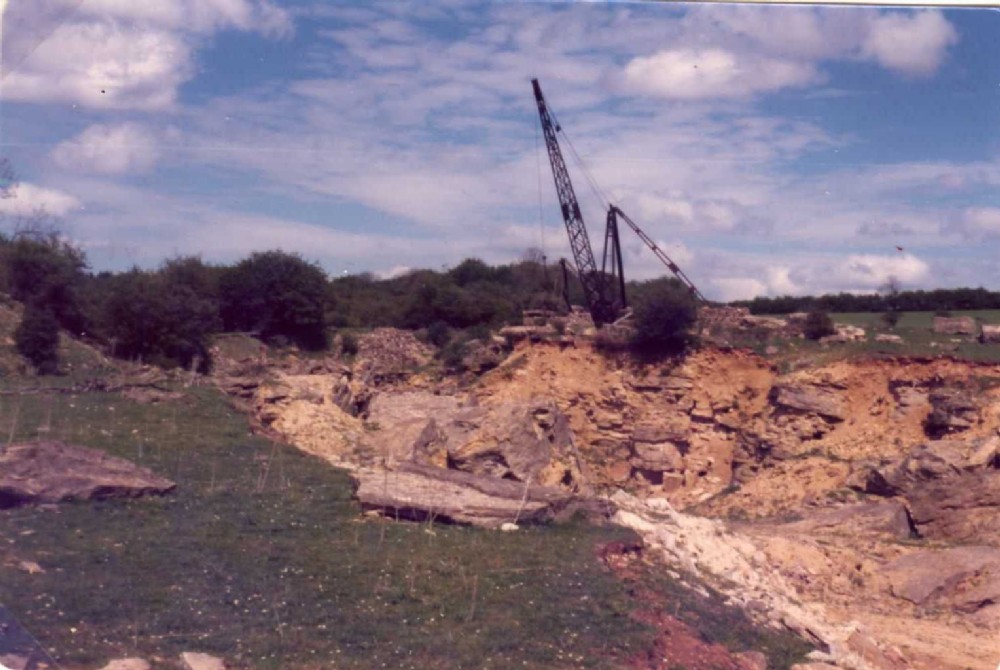 Crane at Taynton Quarries, 1979. Not in use at the time.