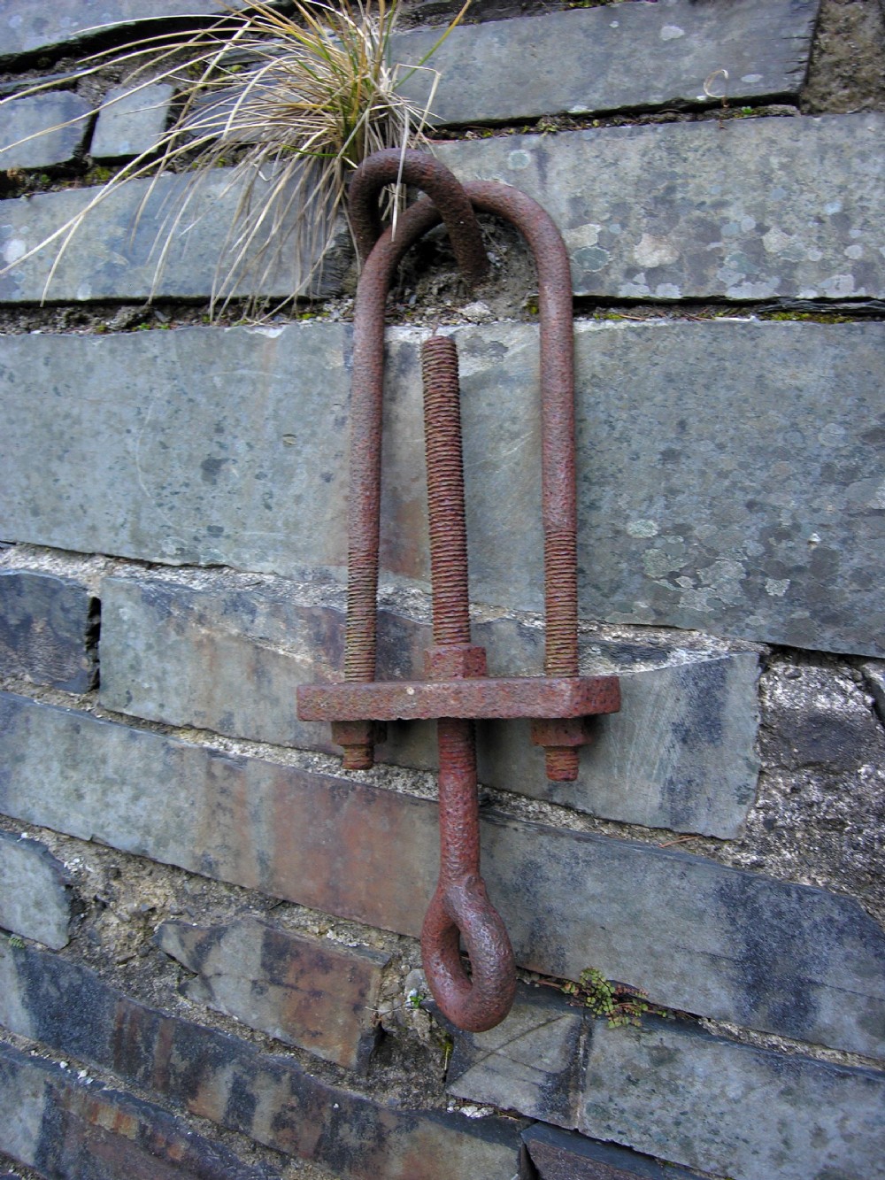 Not sure what this is, there is one in each buttress. Abercorris mill had a metal roof apparently so perhaps support / tension for that.