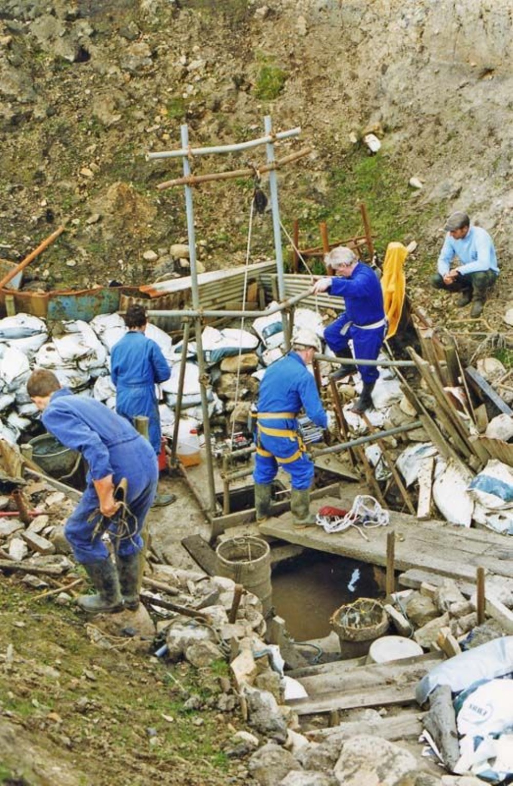 In the 1990s a group of mineral collectors cleared the Hydraulic Shaft in an attempt to reach the meneral bearing flats