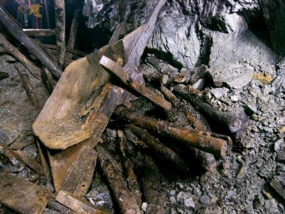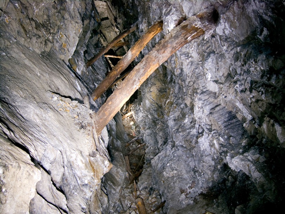 The big stope, deep adit level, Bwlchglas Lead Mine. Visible at the bottom of the stope is Colonel Mustard which gives some idea of scale.