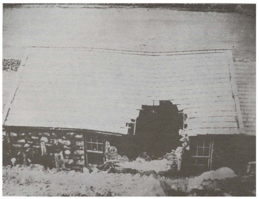 The damage to the chapel at Drws-y-coed after the boulder fell through the roof, 1892