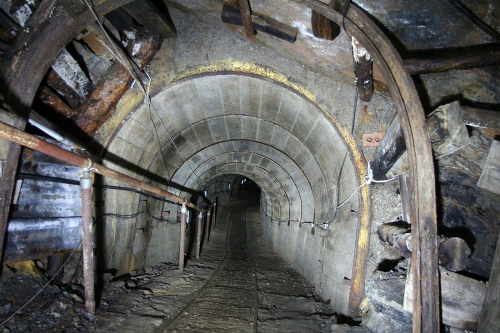 The dipple (incline) complete with concrete floor and handrail installed for the benefit of tourists. This was sunk in the 1950's to intersect much older workings.