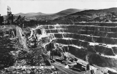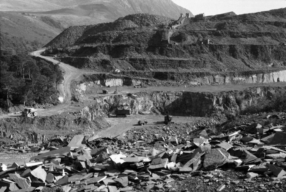 Viewed from the main quarry road up to Red Lion. Notice the remains of the inclines top centre and just below them the toppled headframe of a blondin.