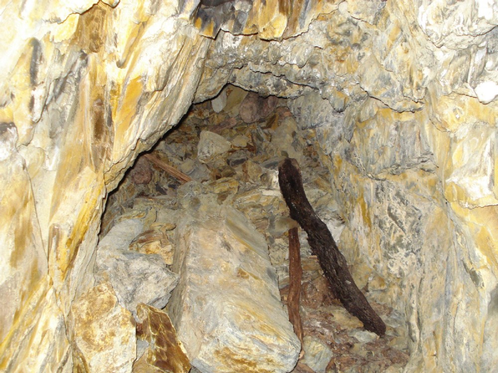 This is the collapse at the current end of the adit. Crawled up the fill but no space at all at the top.