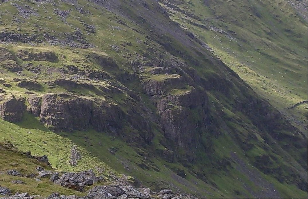 The Entrance is in the center of the picture (taken from Moel Hebog, bearing about 315 degrees), the path from Cwm Pennant is from the left and Beddgelert forest below right, hope this helps you find it.