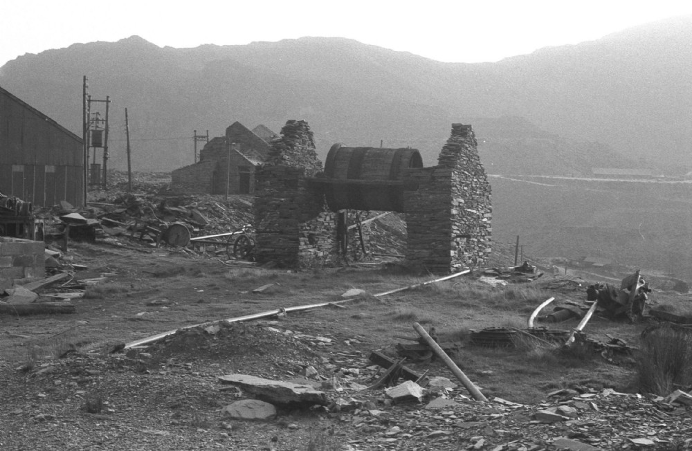I used to shoot in both mono and colour. Here's the old gravity drumhouse in mono, showing rather more of the remains of the blondin carriage and an anchor or two.