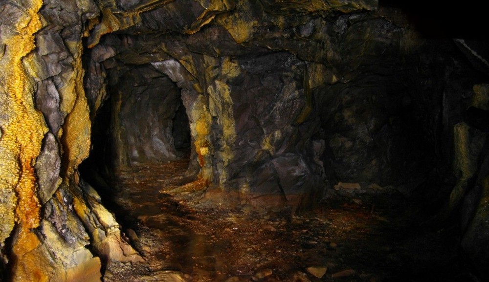 The left passage leads to stoping and goes under the Ffestiniog Railway, coming out the other side in a shaft.