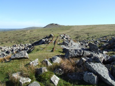098 Looking from the top of the dump, the siding is on the left, The Branch in the centre, note the large loading ramp by the junction. The Bearah Tor Quarry Branch was lifted by the Freeman and Cheeswring Granite Company, the quarry owners, unfortunately we dont know when. 18-05-13.