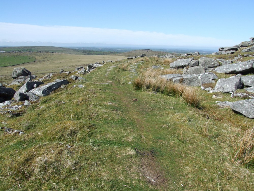 075 The line curves to the north-east. Hawks Tor ahead, Trewortha Tor on the left. 18-05-17.