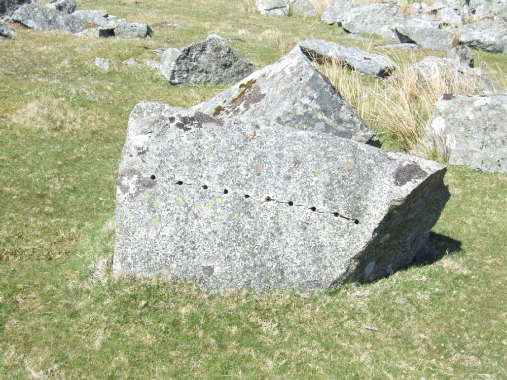 071 Worked Granite like this is much in evidence at Kilmar Tor, something not quite right with this block presumably? 80 men worked at Kilmar. An average of 2.500 tons of fine Granite was produced annually from the moorstone below Kilmar Tor 1859-63, increacing to 7.367 tons when Freemans took over in 1864. 18-05-13.