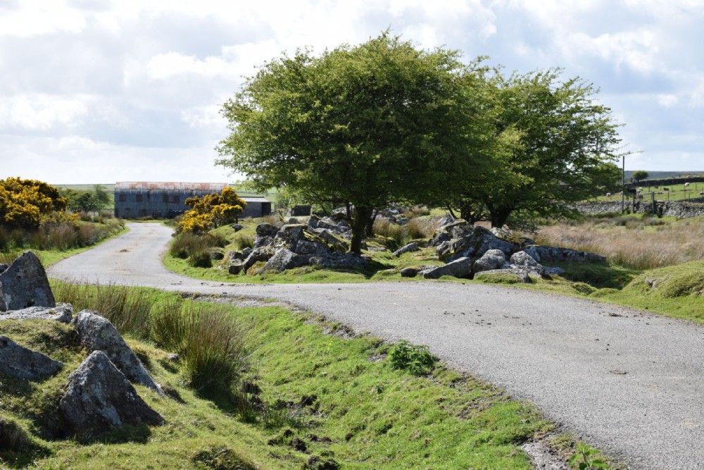 044 The road to Notrh Wardbrook Farm dipping down the side of the embankment. 14-05-17.