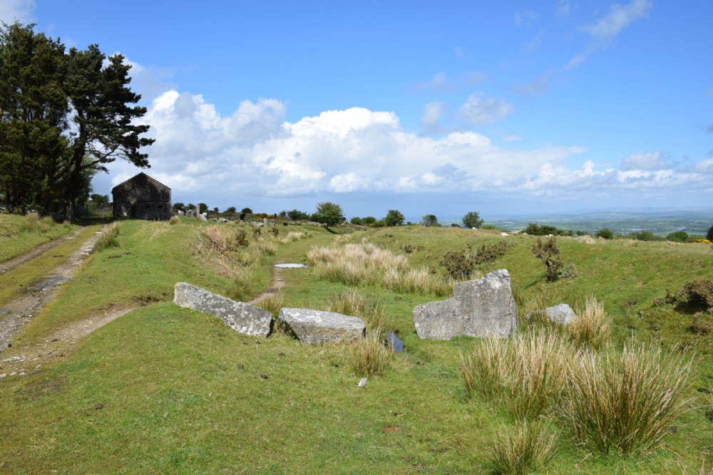 001 The start of The Kilmar Railway, to the left is the track bed of the Cheesewring branch of The Liskeard and Caradon Railway,the building between the Cheesewring branch and the Kilmar Railway is the old miners dry of South Phoenix Mine. 14-05-17.