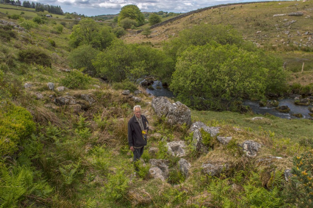Overview of the site in its valley context adjacent the River Walkham. Note the Hearth and Mould Stone infront of and adjacent to father.