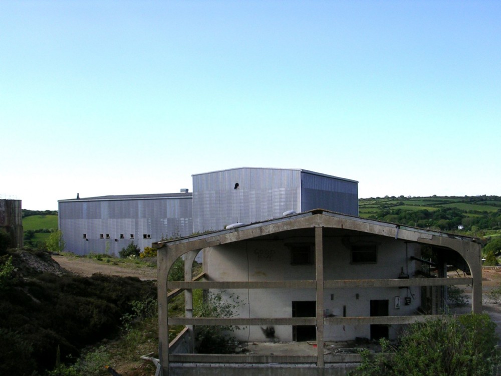 View towards the workshop (note 'Good Bye' sprayed on the wall), mill and fine ore bin.