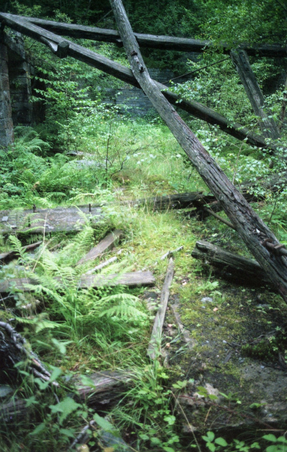 In the 1863 'old' mill machine bases peek out from beneath collapsed beams and undergrowth.